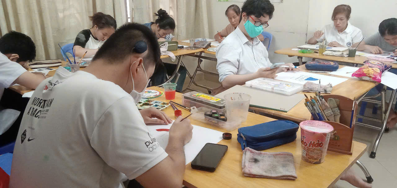 During the session, the students were instructed by the teacher on how to draw contrasting color schemes for the logos of familiar brands such as Pepsi, Lego, Shopee, etc. Also through the class, students better understood the contrasting color pairs according to color theory and applied them to design symbols, get acquainted with the new concept of logos to prepare for future logo design drawings, and at the same time practiced skills of focus, skill of using a brush for more accurating color painting.