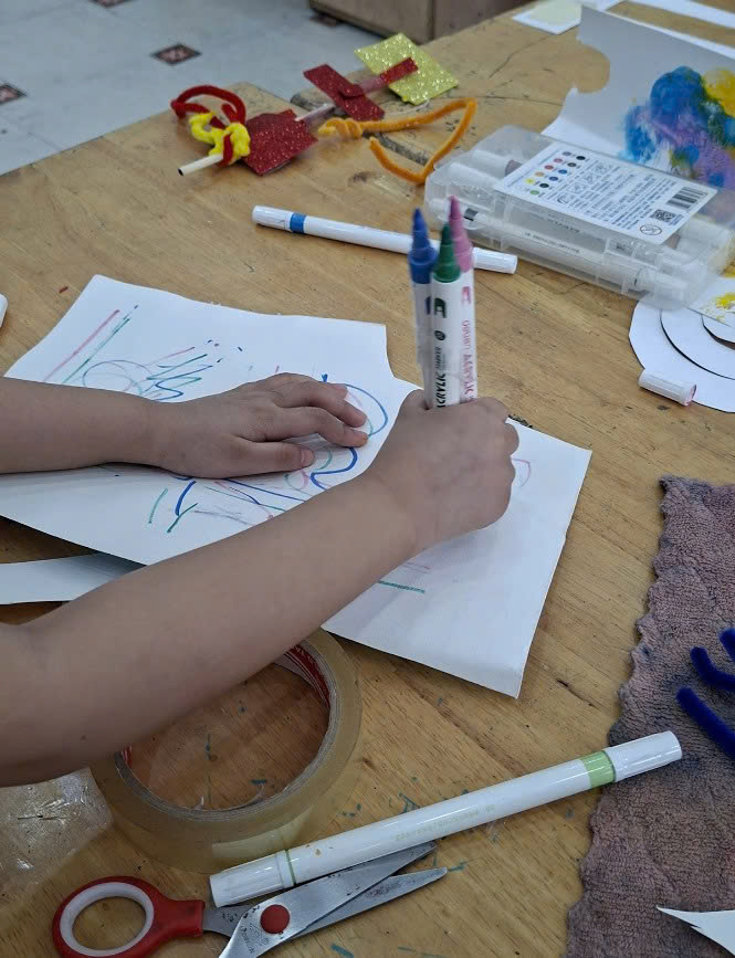 Using various materials such as colored paper, pipe cleaners, wooden sticks, scissors. And with the dedicated guidance of their teachers, the students completed their artworks with remarkable creativity. Some used a vibrant palette of colors, others added letters, and some even crafted flowers with truly unique shapes.
