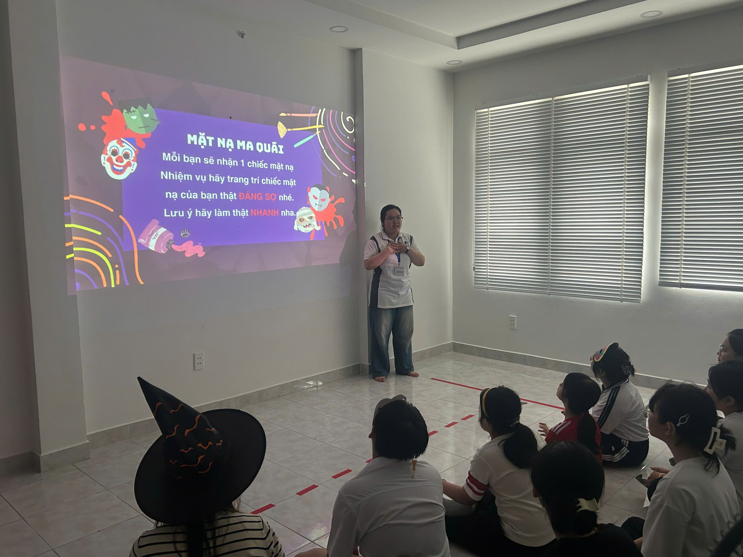 This activity not only helped the children learn more about the world's Halloween festival culture but was also a great opportunity for them to practice communication skills, team spirit, and enjoy joy in a friendly, open learning environment. The morning concluded in a vibrant atmosphere, full of laughter and the unique, adorable costumed images of the children.