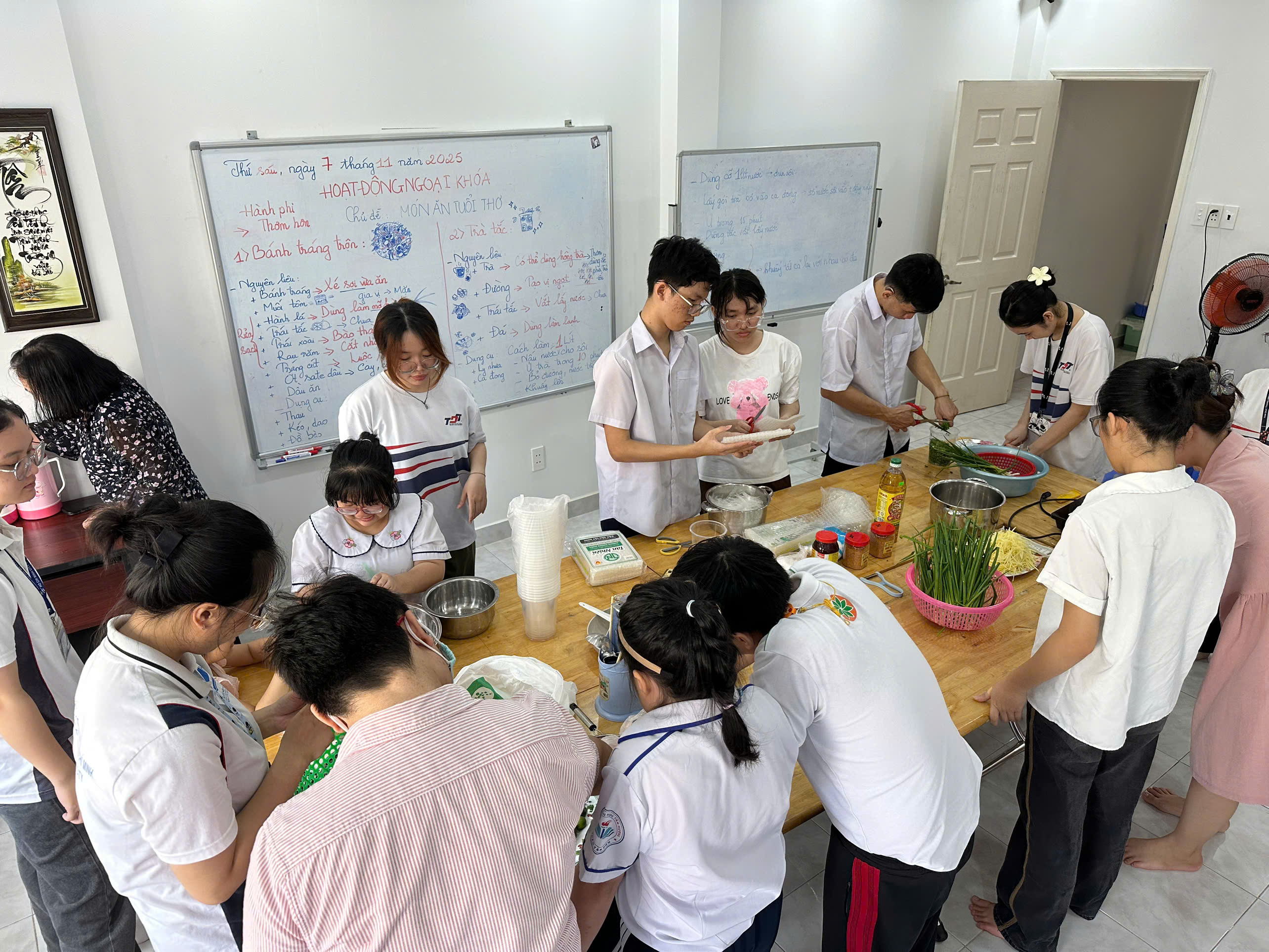 The activity not only helped students practice self-service skills and teamwork, but also brought joy, bonding, and creative experience. Each colorful portion of rice paper salad and each refreshing glass of kumquat tea represented friendship, happiness, and sharing.