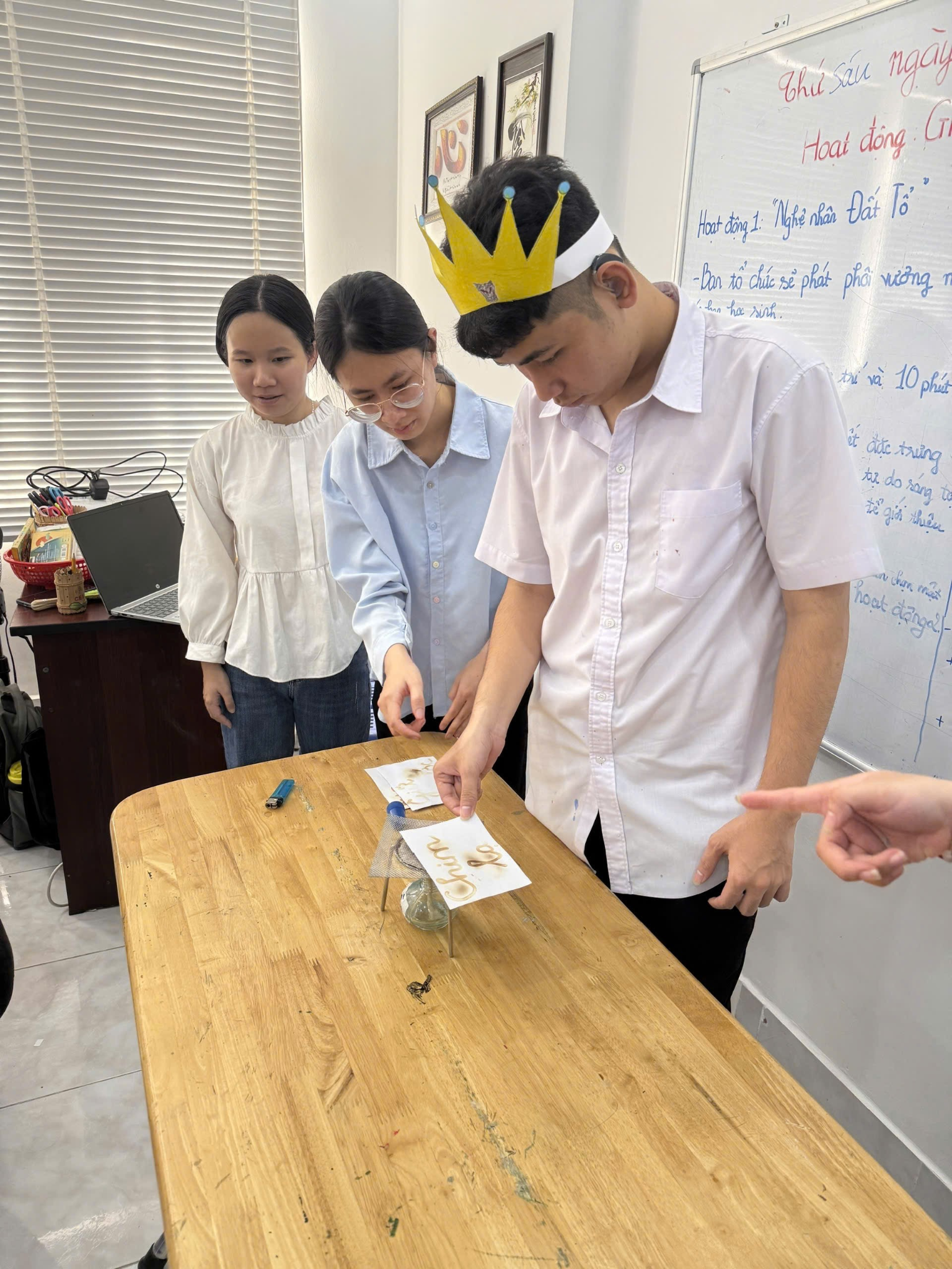 The final challenge took the students from one surprise to another. By using heat to reveal "invisible" words written with lemon juice, the students patiently and skillfully discovered hidden historical keywords on their own. After successfully decoding them, they read aloud meaningful messages about our roots and gratitude. This activity not only trained their meticulousness but also helped to deeply engrave the noble, humane values of the National Commemoration Day.