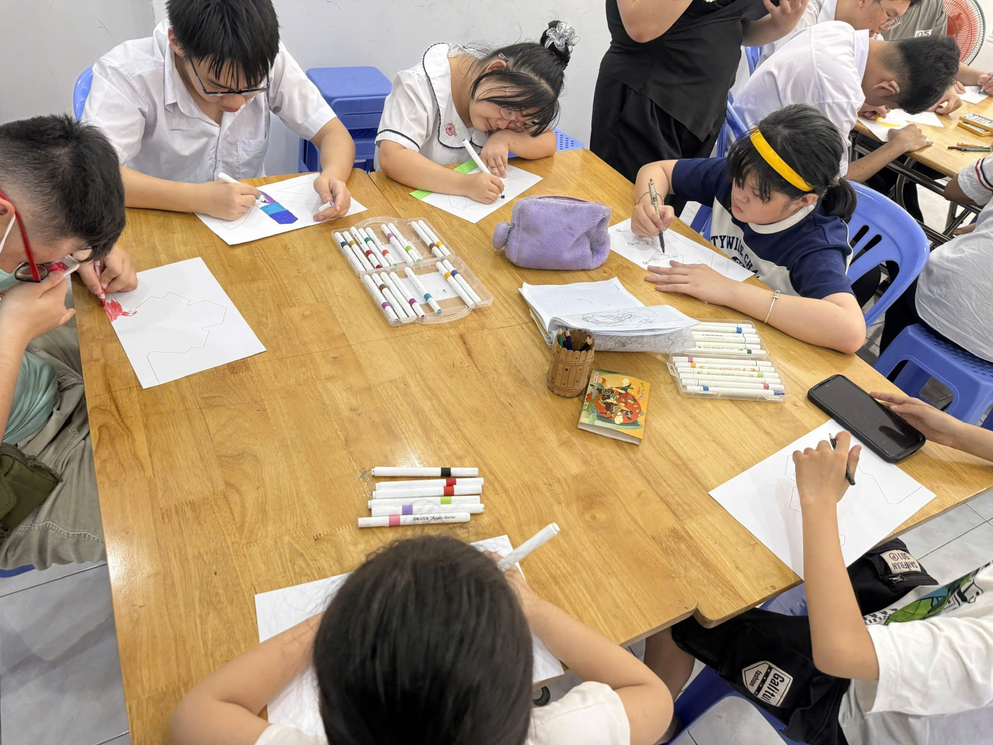 At this stop, the students had the opportunity to transform into true artisans. With skillful hands and creativity, each paper crown was decorated with countless signature motifs from the Hung King era. From the image of the Lac bird spreading its wings and the winding patterns of the Bronze Drum to their own highly creative designs, everything was vividly recreated by the students. Each product was not only a colorful work of art but also reflected their deep appreciation and understanding of our ancestors' traditional cultural beauty.