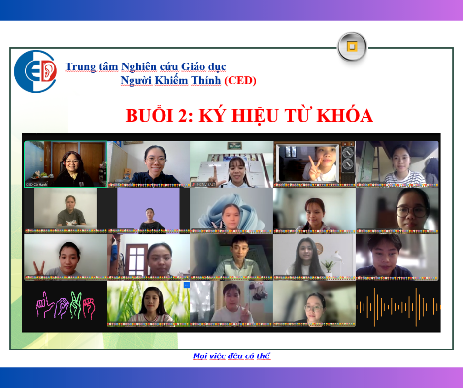 “Ký hiệu từ khóa” là một trong ba chuyên đề (ngôn ngữ ký hiệu, ký hiệu từ khóa, đọc tín hiệu môi) do Bà Dương Phương Hạnh phụ trách giảng dạy cho sinh viên.