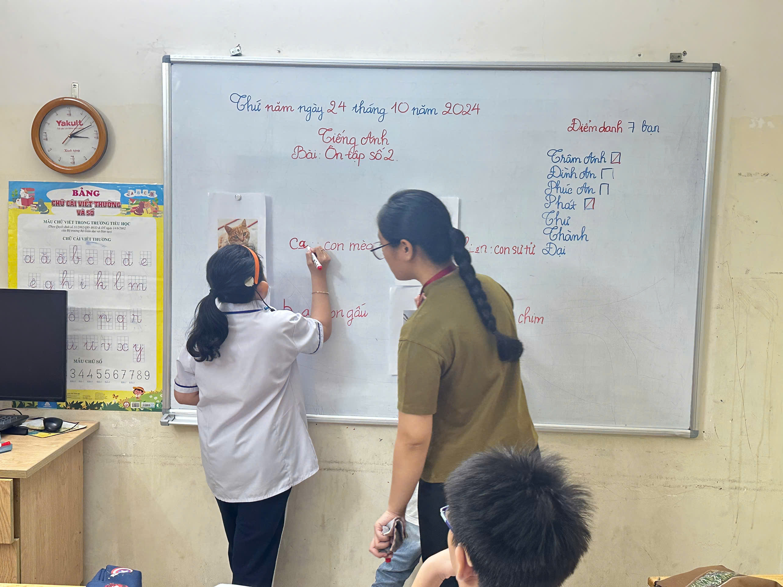 Trong buổi học, các em đã được giới thiệu và thực hành từ vựng về các loài động vật thông qua nhiều hoạt động thú vị như trò chơi đoán tên động vật, vẽ tranh, nối từ, điền từ về loài vật yêu thích. Mỗi học sinh đã tự tin lên bảng trình bày về một loài động vật mình yêu thích. Buổi ôn tập đã mang lại không khí vui tươi và tích cực, giúp các em hào hứng hơn trong việc học tiếng Anh.