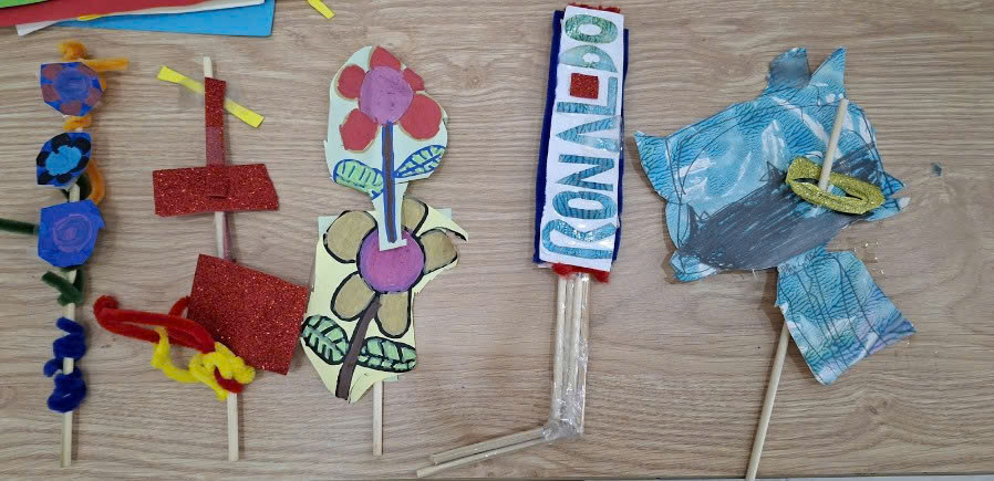 Với các nguyên vật liệu: giấy màu, dây kẽm nhung, que gỗ, kéo, băng keo. Và dưới sự hướng dẫn tận tình của giáo viên, các em đã hoàn thành tác phẩm của mình một cách vô cùng sáng tạo: có bạn sử dụng rất nhiều màu sắc rực rỡ, có bạn kết hợp thêm chữ cái, có bạn lại tạo ra những hình dáng rất khác biệt.