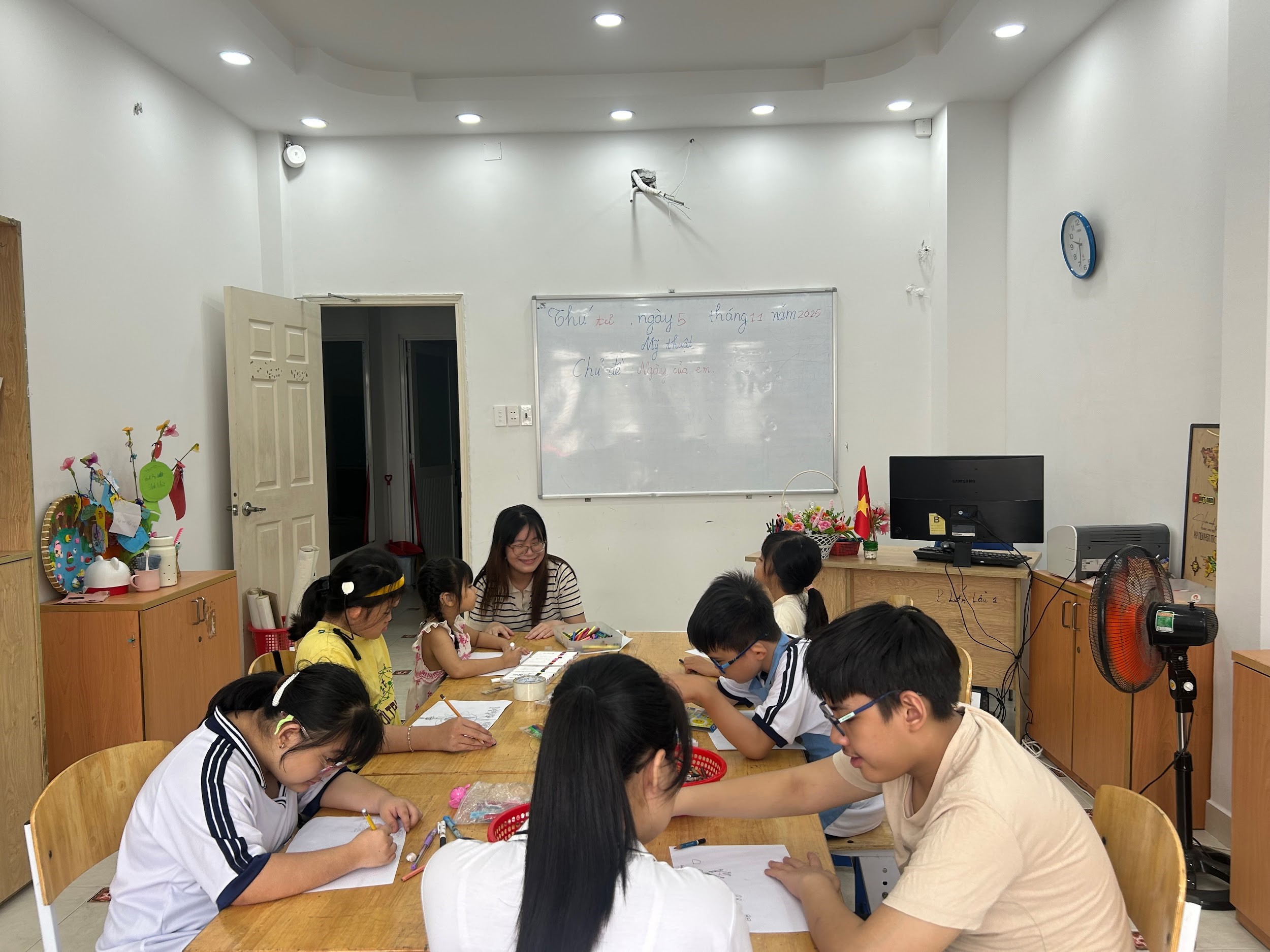 Vào hôm nay, Thứ Tư, ngày 5 tháng 11 năm 2025, tại Trung tâm Nghiên cứu Giáo dục Người Khiếm Thính, một tiết học mỹ thuật đặc biệt với chủ đề "Ngày Của Em" đã diễn ra, mang đến cho các em học sinh một không gian sáng tạo và biểu đạt đầy ý nghĩa.