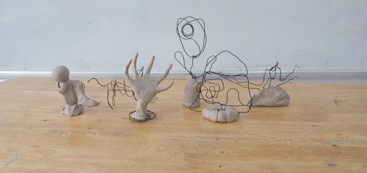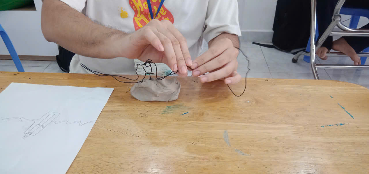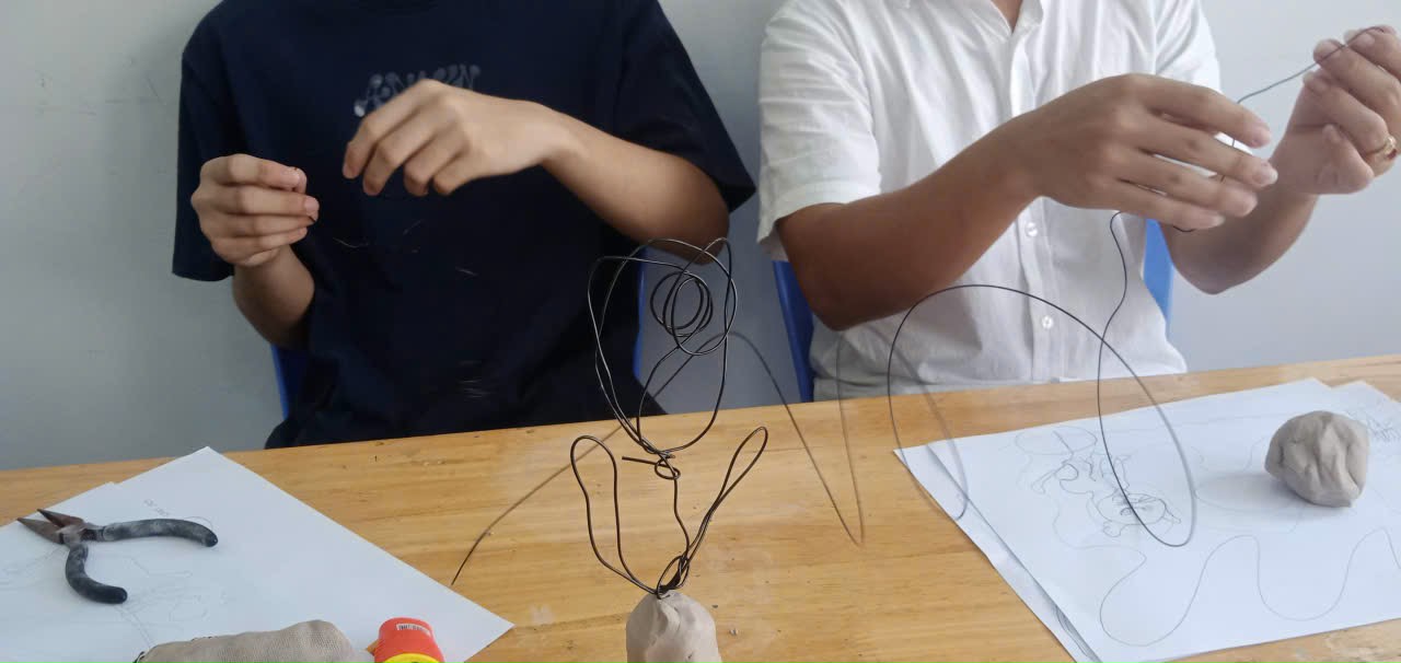 Với các nguyên liệu: đất sét, dây kẽm, kềm, bút chì, giấy A4, dưới sự hướng dẫn của giáo viên, các bạn đã hoàn thành tác phẩm điêu khắc đầu tay mang phong cách cá nhân và đầy tính sáng tạo.