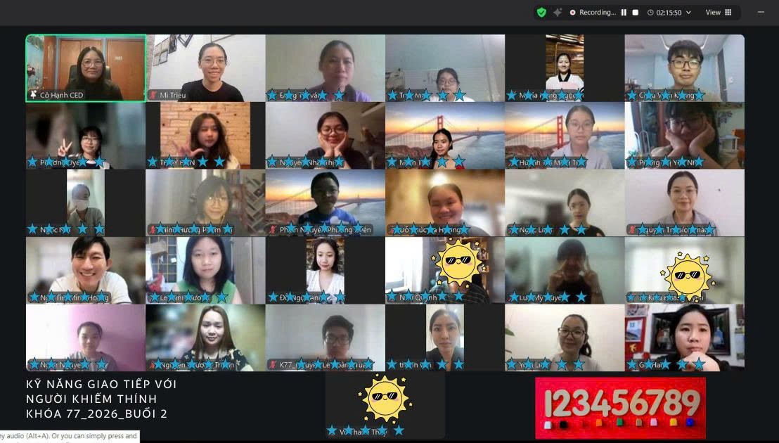 Ngày 15/03/2026, Bà Dương Phương Hạnh – Giám đốc Trung Tâm Nghiên Cứu Giáo Dục Người Khiếm Thính (CED) đã tập huấn về chuyên đề Ngôn ngữ ký hiệu Cơ bản cho 34 học viên, gồm có 14 người đang công tác trong các lĩnh vực Giáo dục, Y tế, Công tác xã hội, Kinh doanh, Truyền thông, Nghệ thuật và 20 sinh viên, học sinh.
